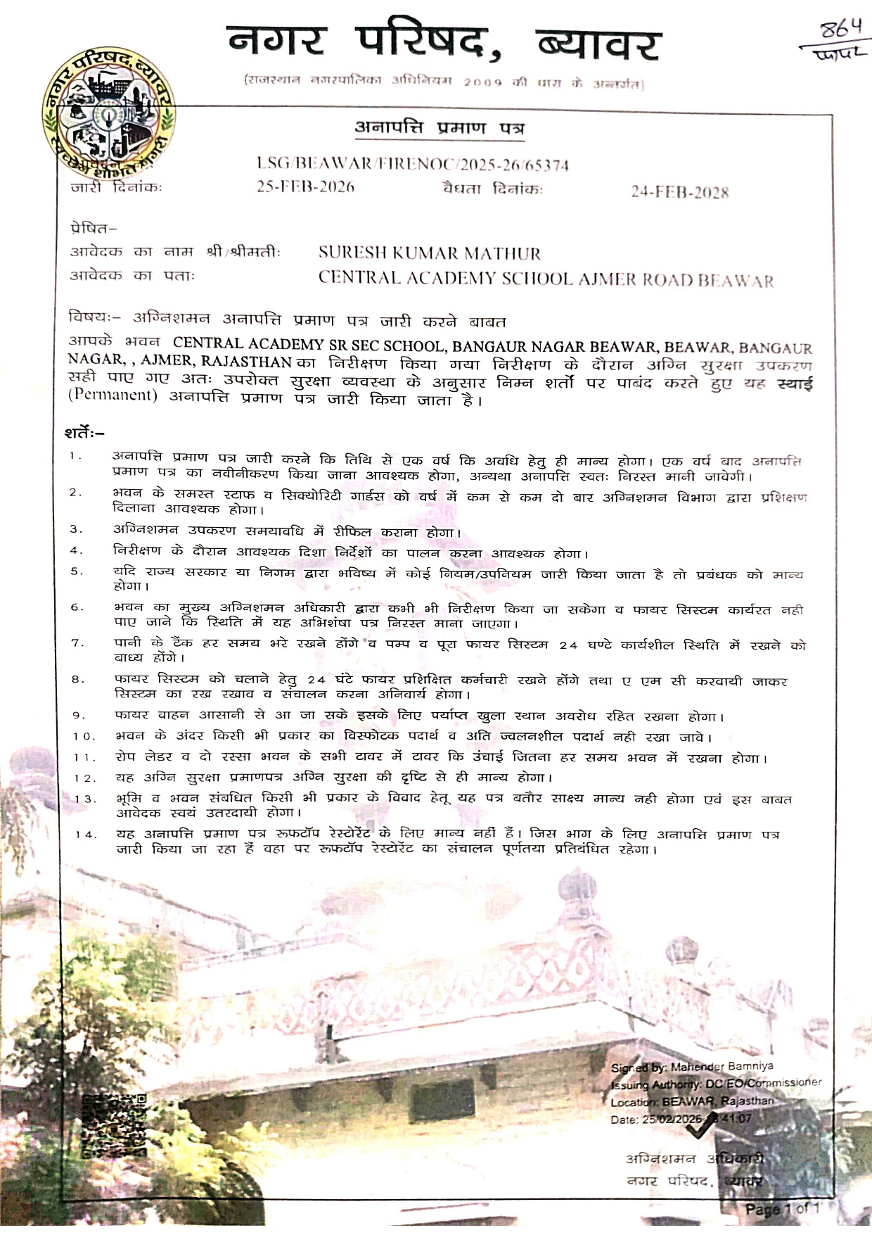 Fire Safety Certificate